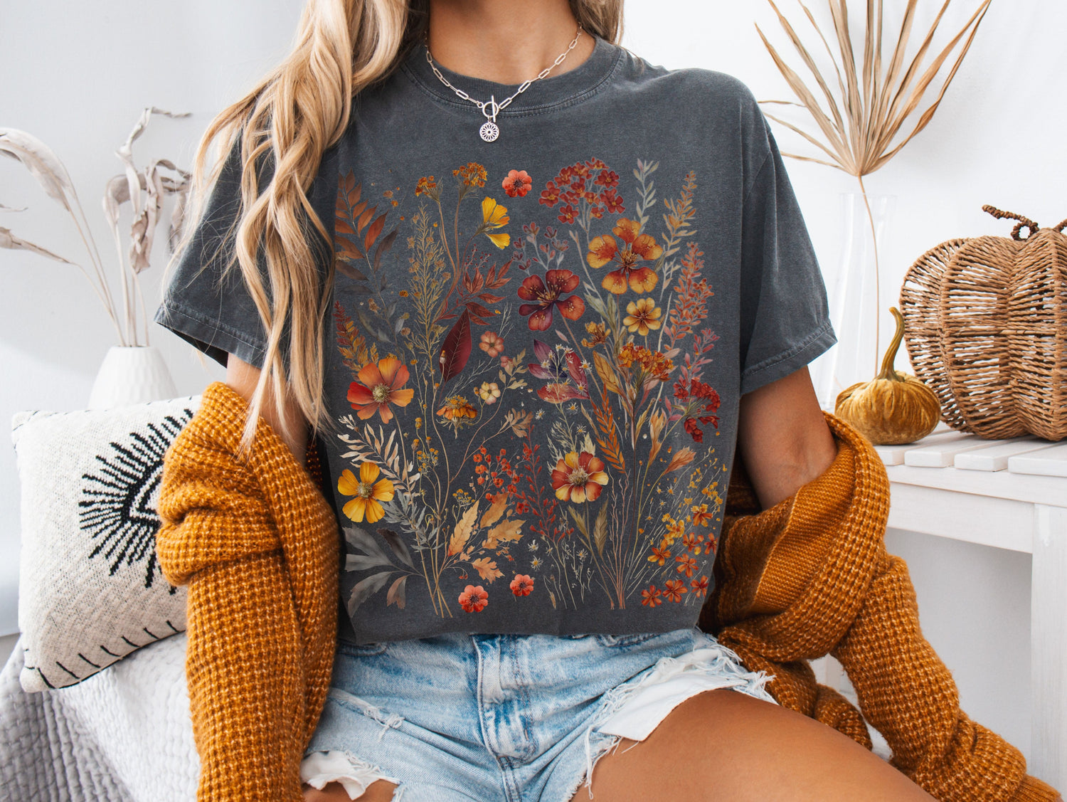 Autumn Cottagecore Wildflowers Fall Tee